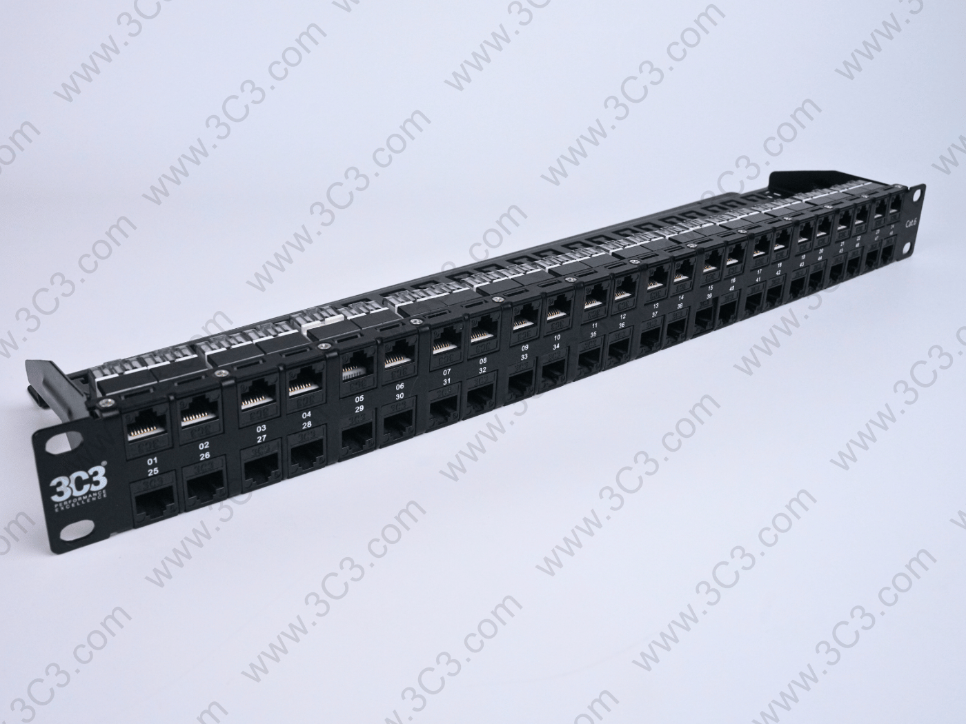 • 19” RJ-45 Patch Panel with 48 ports on 2U