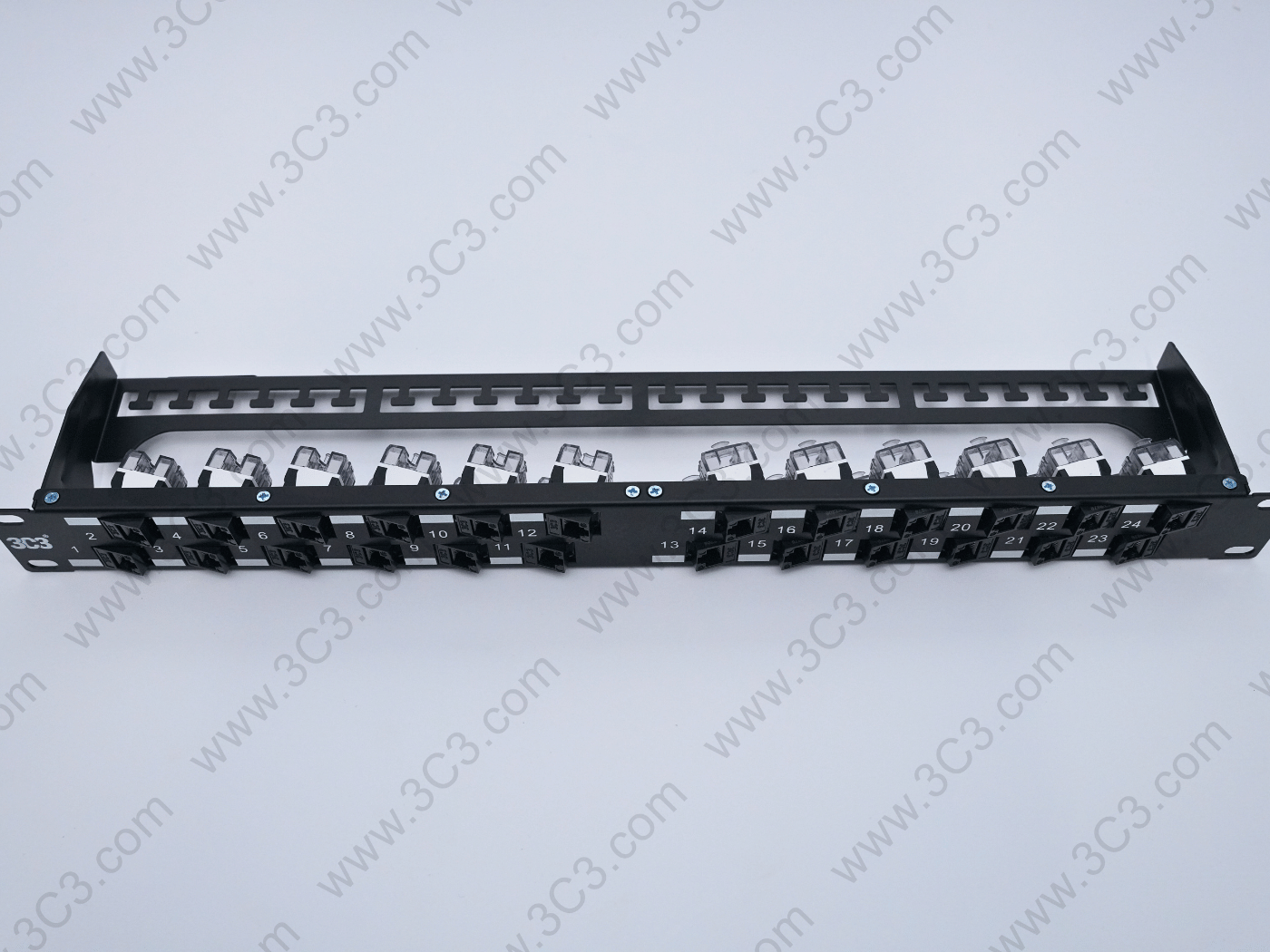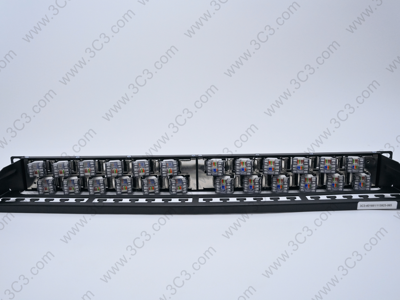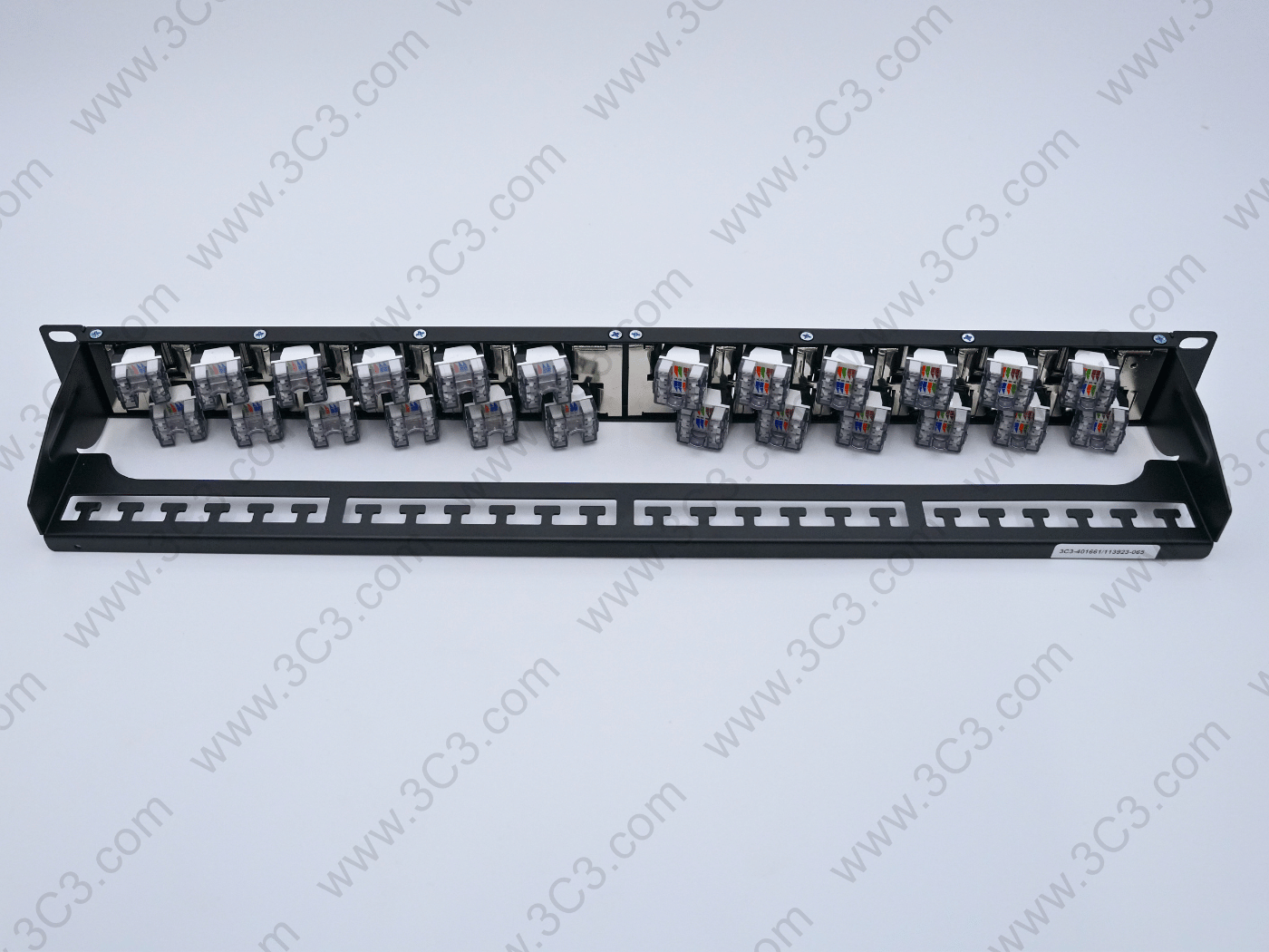 Rack Mountable Staggered Patch Panel – C6A, 1U offers fast and reliable installation designed for 10G transmission requirement. The staggered design reduces Alien Crosstalk to support IEEE 802.3an and ANSI/TIA 568.2-D. Each port of the panel is numbered and having designated label area for clear port identification. Patch Panel includes with mini cable ties, cage nuts and rare cable management.