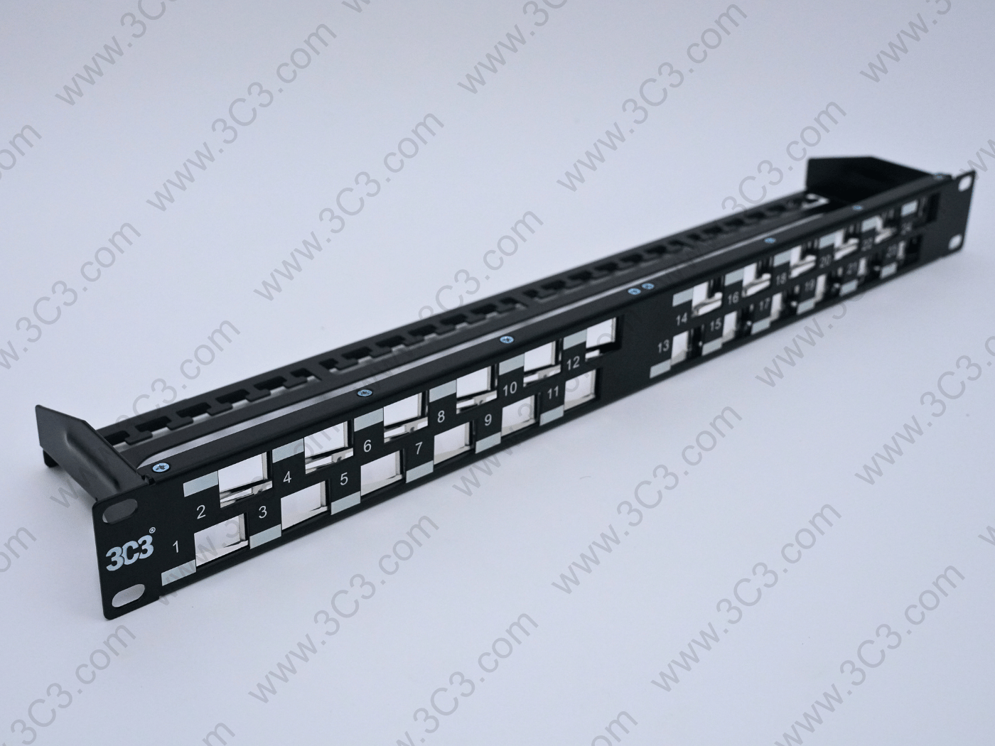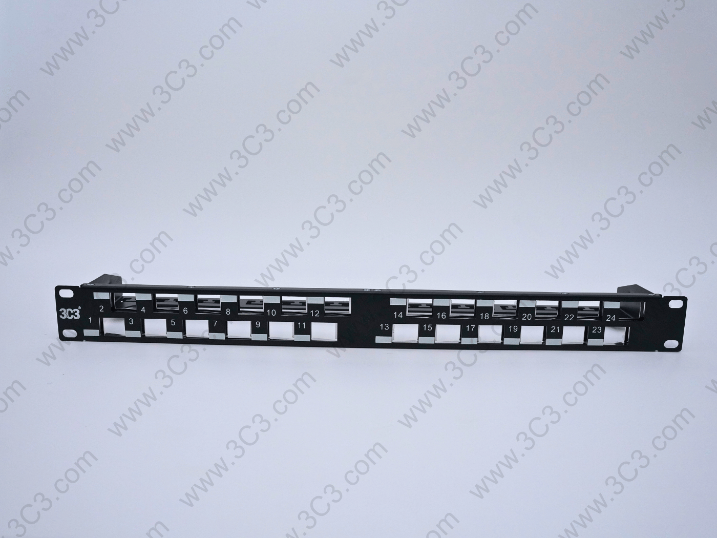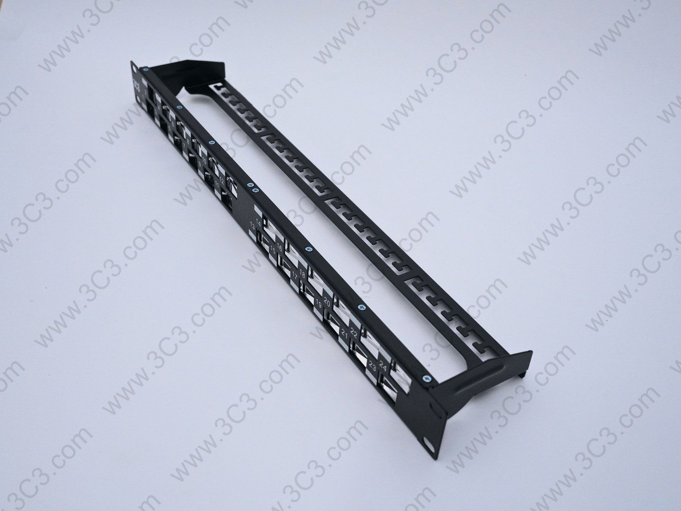 Rack Mountable Staggered Patch Panel – C6A, 1U offers fast and reliable installation designed for 10G transmission requirement. The staggered design reduces Alien Crosstalk to support IEEE 802.3an and ANSI/TIA 568.2-D. Each port of the panel is numbered and has a designated label area for clear port identification. Patch panel includes mini cable ties, cage nuts and rare cable management. The jack has to be ordered separately.